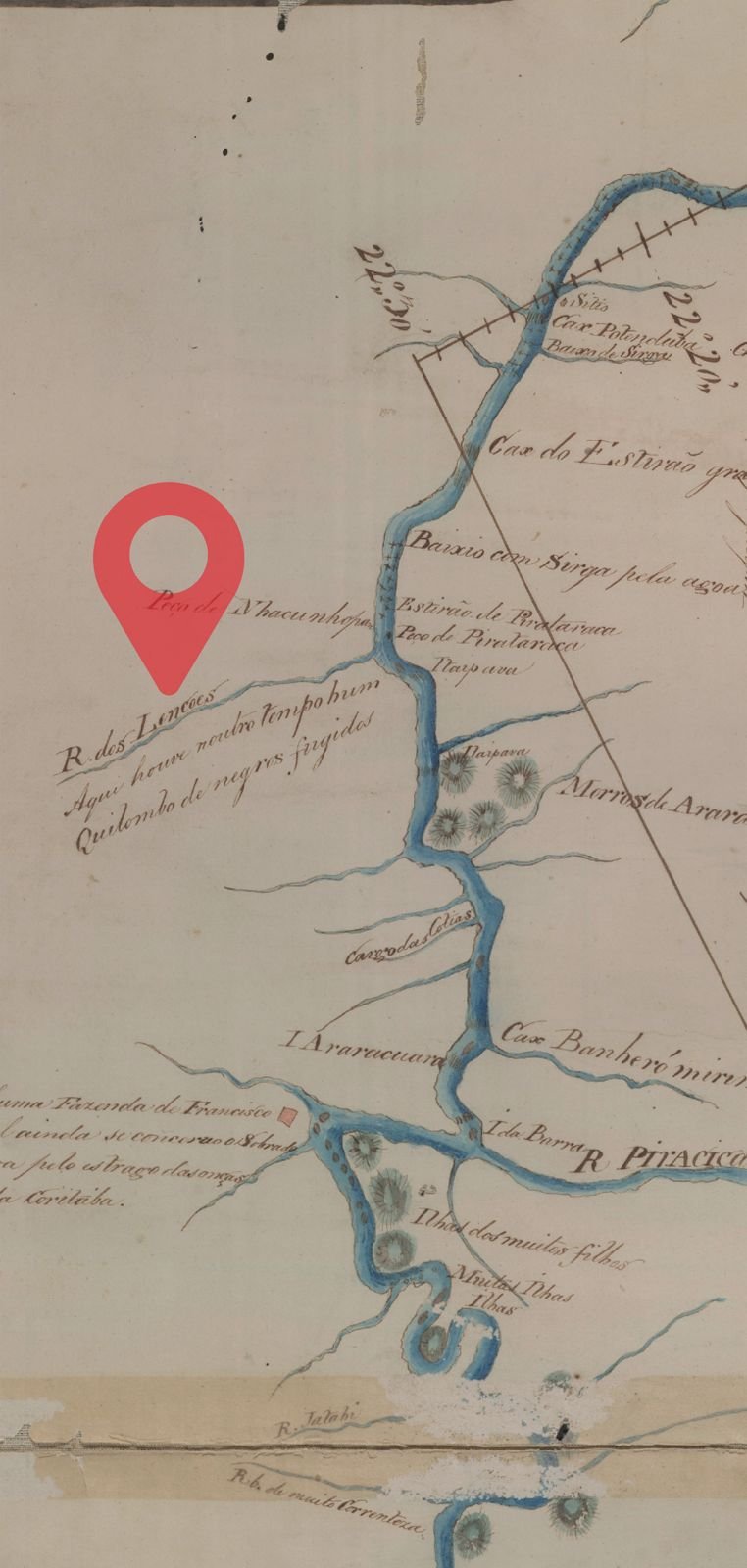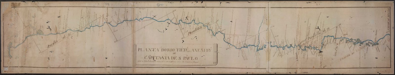 ALMEIDA, Francisco José de Lacerda e. Planta do Rio Tieté ou Anembý na Capitania de S. Paulo: desde a cidade do mesmo nome até á sua confluencia com o Rio Grande, ou Rio Paraná, 1788-90. Biblioteca Nacional, ARC.028,03,031 Cartografia.