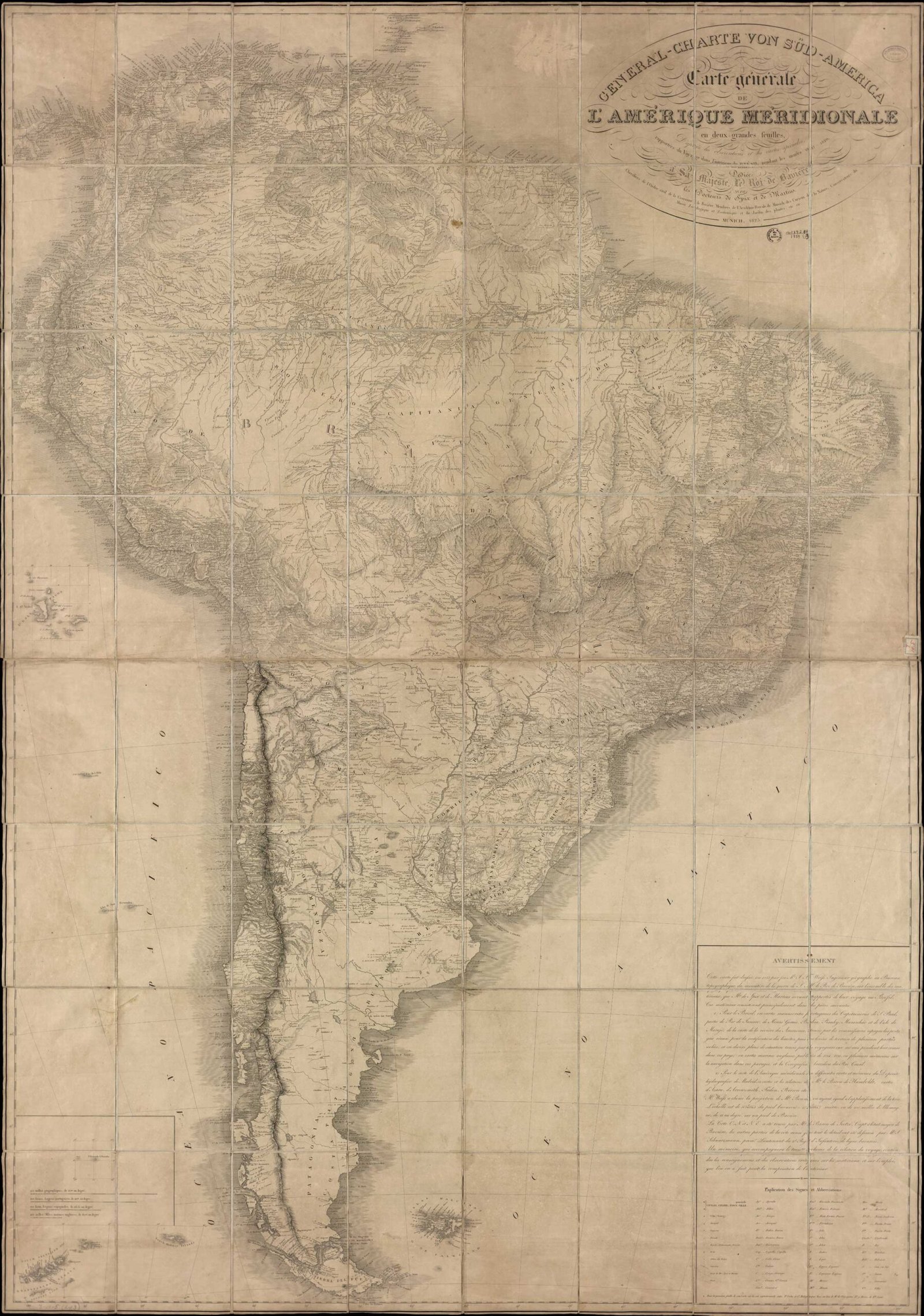 PETERMANN, August. Carte générale de l’Amérique méridionale / General-Charte von Süd-America en deux grandes feuilles. München: 1875. [Mapa impreso].
