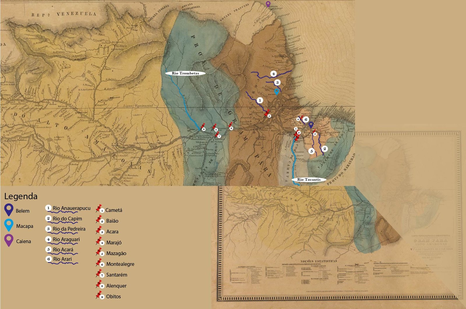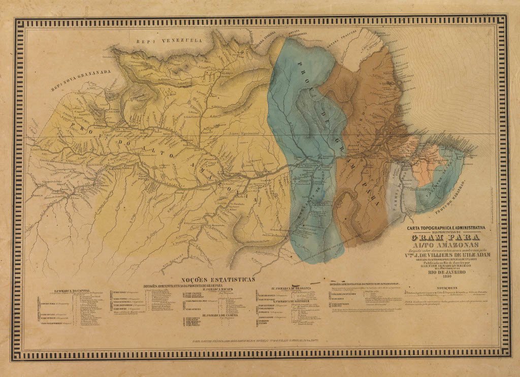 VILLERS DE L’ÎLE-ADAM, J. de. Carta topographica e administrativa das provincias de Gram Para e Alto Amazonas. Rio de Janeiro: [s.n.], 1850. 1 folha (43,5 × 63,5 cm).
